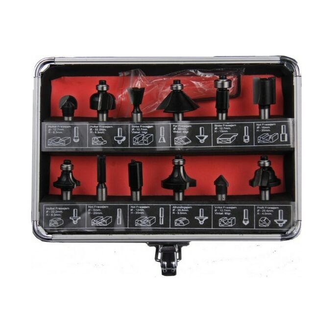 В набор входит 12 фрез разных по форме и назначению. Хвостовик 8 мм.