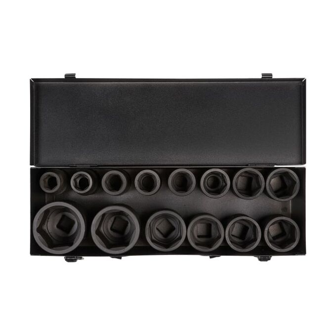 Набор головок ударн. 3/4" 56мм 14пр. (17,19,21,22,24,27,30,32,34,35,36,41,46,50мм) мет. кейс AIRLINE ATAS044 Материал - сталь 42CrMo Твердость - 45-49 HRC Покрытие - фосфатирование Предназначены для работы с пневматическим и ручным инструментом.