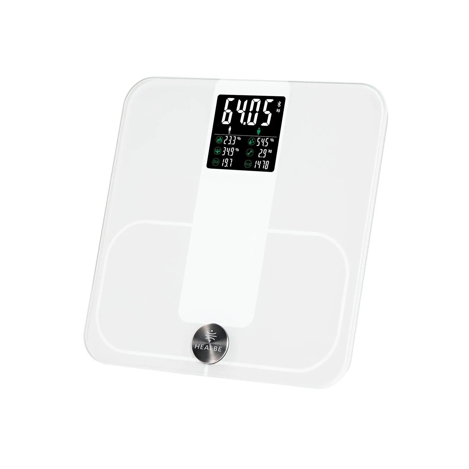 Перечень данных отображаемых на дисплее весов: Вес, Телосложение, Процент жира, Процент гидратации, Процент мышц, Костная масса BMI, БМР (Основной обмен).