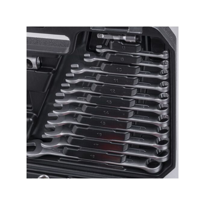 Набор инструмента профессиональный разработан для эксплуатации с крепежом нестандартных типов. Это позволяет эффективно работать в мастерских и с современными автомобилями.