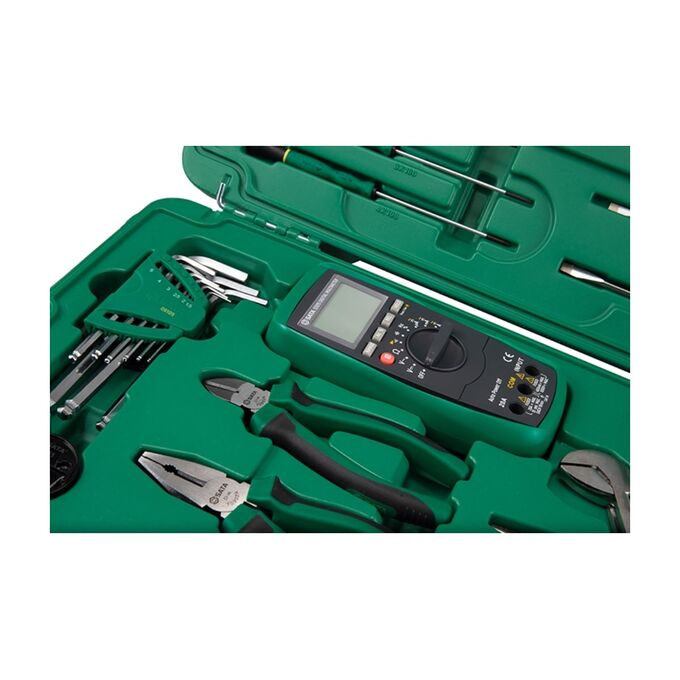 Универсальный набор инструмента для электротехнических работ 56шт Sata S09535 - комплект профессионального электрика, сочетающий в себе всевозможные инструменты и приспособления для выполнения электромонтажных работ. Представленный набор станет прекрасным помощником при необходимости проведения паяльных, ремонтных, сборочных, демонтажных и диагностических операций. Все компоненты удобно располагаются в кейсе с крышкой на замках, что препятствует утере отдельных элементов при транспортировке.