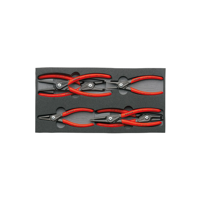 Набор кольцесъемников KNIPEX KN-002001V02 включает в себя 6 предметов - различных черненых щипцов с чехлами на рукоятках из противоскользящей пластмассы. Данные инструменты прекрасно подходят для верстака и автомастерской. Они очень прочны и долговечны в использовании, наконечники изготовлены из высокопрочной и качественной пружинной стали. Такой набор - идеальный вариант для быстрого и легкого монтажа.