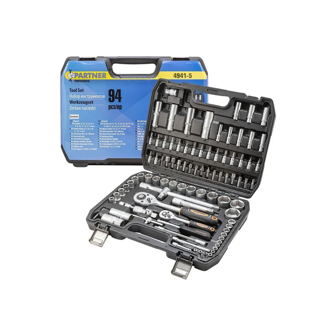 Набор инструментов Partner из 94 элементов — это идеальное решение для всех, кто ценит качество, универсальность и удобство в работе.