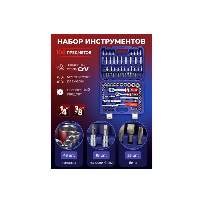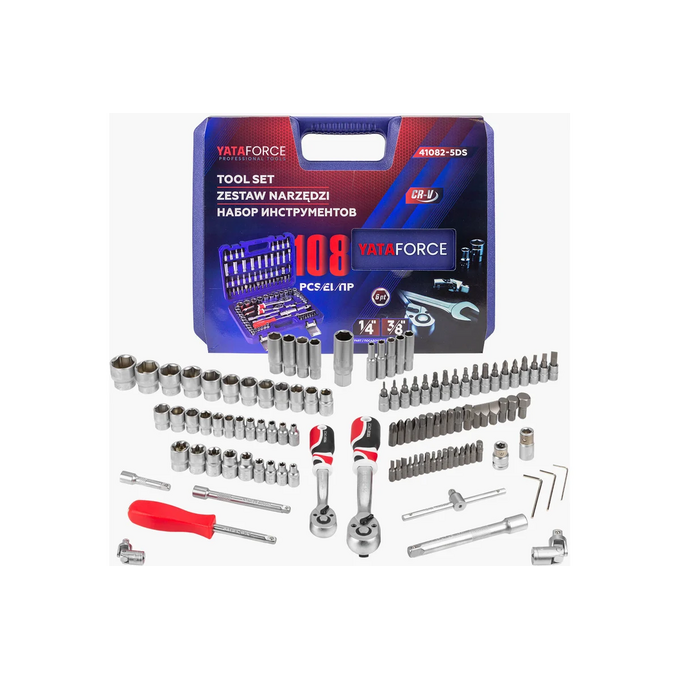 Набор инструментов от бренда YATAFORCE, состоящий из 108 предметов, представляет собой идеальное решение для работы с обычным крепежом, а также с гайками и болтами с поврежденной или сорванной гранью.
