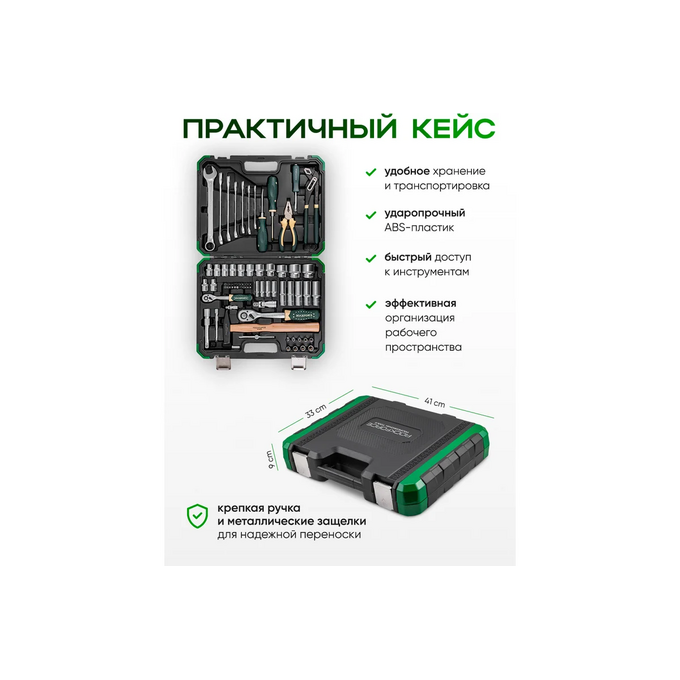 Набор инструментов Rockforce — это профессиональный комплект, состоящий из 74 предметов, который станет незаменимым помощником для любого автолюбителя и мастера. Все необходимые инструменты для обслуживания, ремонта и диагностики автомобилей, мотоциклов, велосипедов и другой техники упакованы в удобный кейс.
