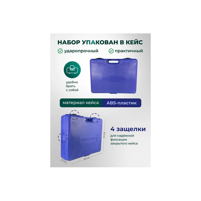 - Удобный пластиковый кейс: Набор поставляется в прочном пластиковом кейсе, который обеспечивает надежную защиту инструментов и удобство хранения и транспортировки