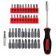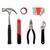Комплектация набора — биты, молоток, отвертка, пассатижи, разводной ключ.