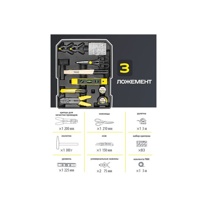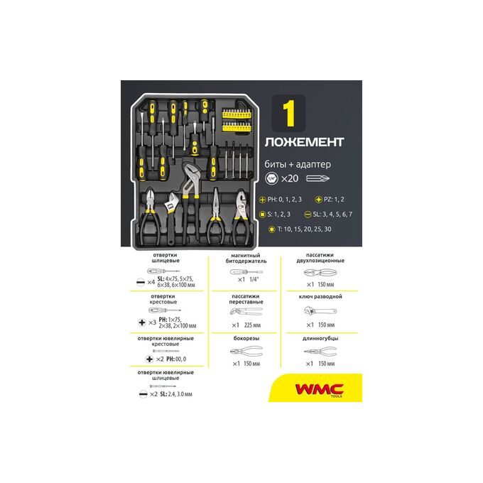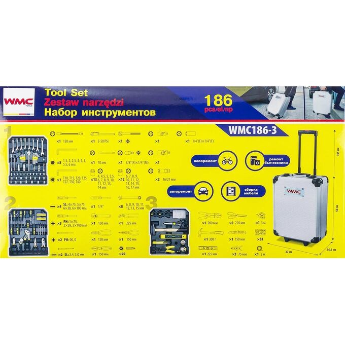 Технические характеристики набора инструментов WMC TOOLS WMC-WMC186-3