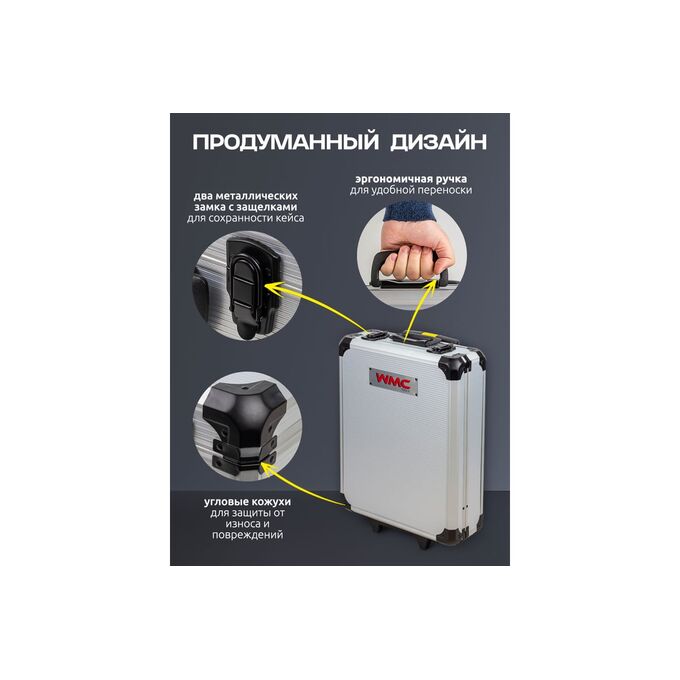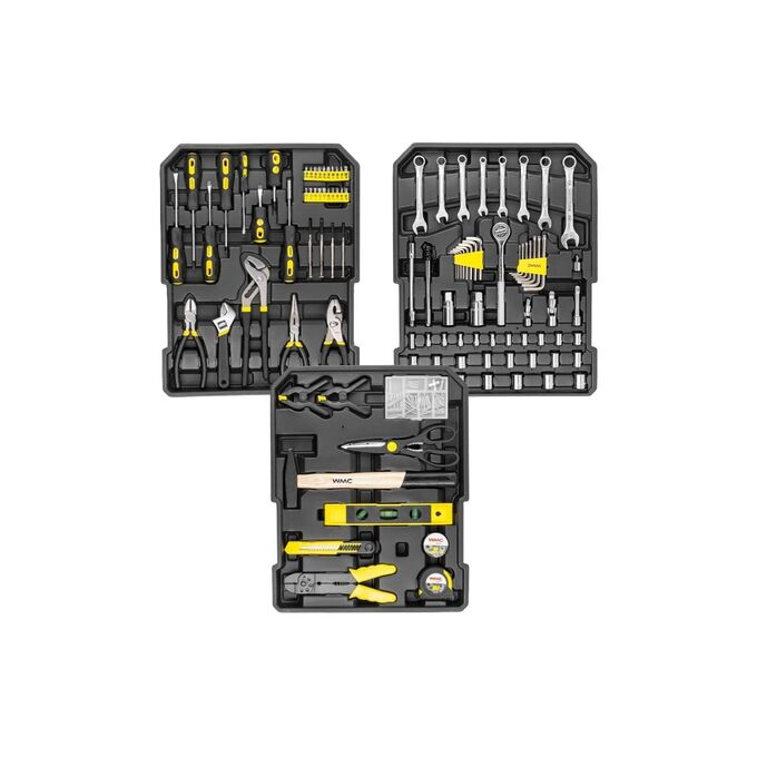 Набор универсальных инструментов WMC TOOLS из 186 предметов на 1/4" и 3/8" в кейсе-чемодане - помогут при выполнении слесарных и монтажных работ. В этом уникальном наборе инструментов для ремонта на все случаи жизни действительно представлено практически всё необходимое.