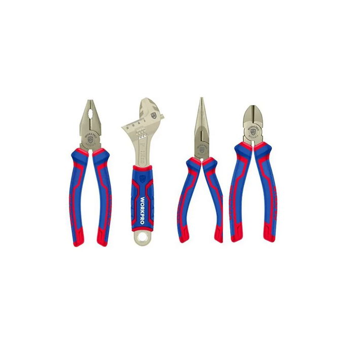 Набор инструментов WORKPRO WP201009 4шт (ключ разводной/длинногубцы/бокорезы/пассатижи)