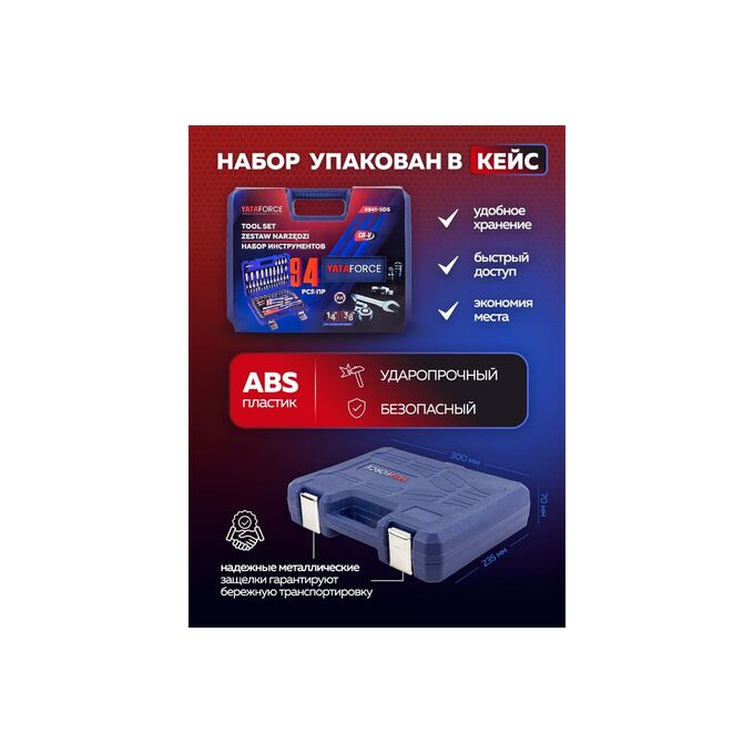 Набор инструментов от бренда YATAFORCE из 94 предметов в кейсе - предназначен для работы как с обычным крепежом так и с гайками или болтами, у которых повреждена или сорвана наружная поверхность, так называемая грань.