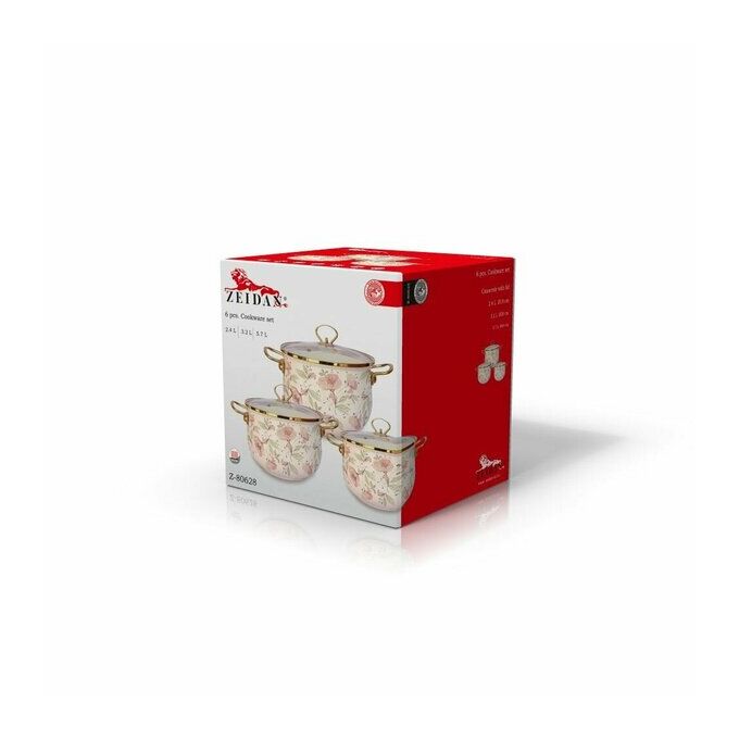 Набор кастрюль ZEIDAN Z-80628 Flowers с крышками 6 предметов