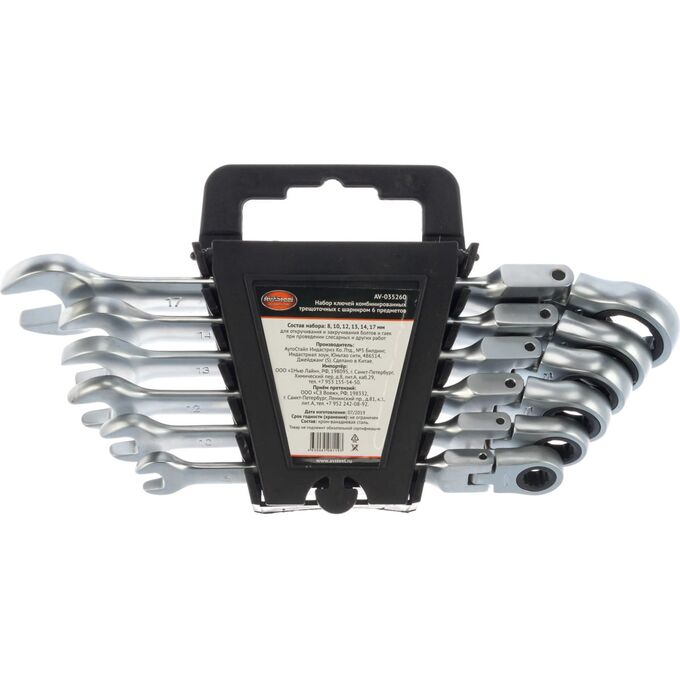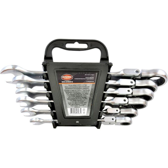Набор ключей комбинированных AV Steel AV-035260 трещоточных с шарниром 8-17мм 6 предметов
