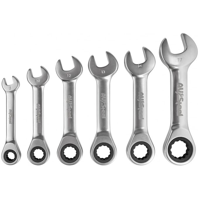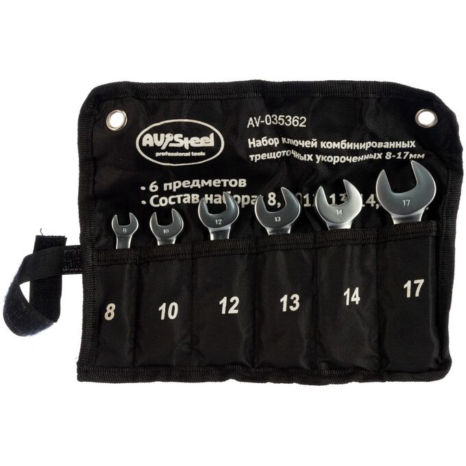 Набор ключей комбинированных AV Steel AV-035362 трещоточных укороченных 8-17мм " 6предм. в сумке