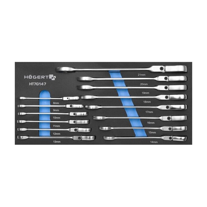 Набор ключей комбинированных HOEGERT TECHNIK HT1R048-HT1R061 (HT7G147) с трещоткой и шарниром 14шт.
