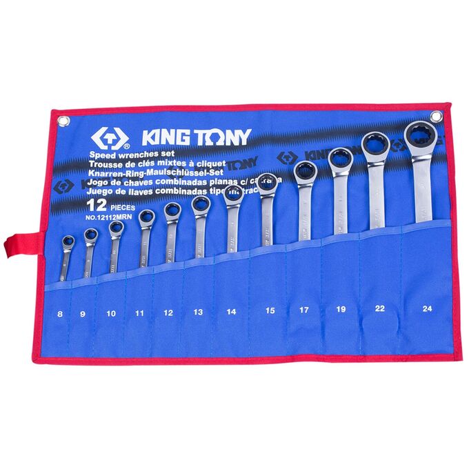 Набор ключей комбинированных KING TONY 12112MRN трещоточных 8-24 мм, чехол из теторона, 12 предметов