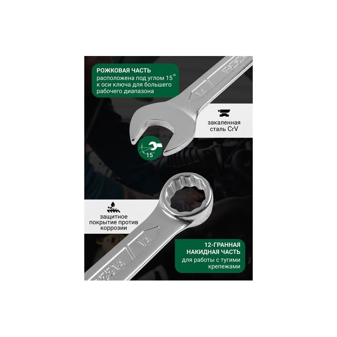 Набор ключей комбинированных, 16 предметов от бренда ROCKFORCE - ручной инструмент для работы с различными резьбовыми соединениями. Накидная часть применяется для работы с тугими крепежными соединениями, а рожковая применятся, если нет возможности накинуть ключ на соединение сверху - в таком случае можно работать с какой-то из сторон рожковым гаечным ключом.