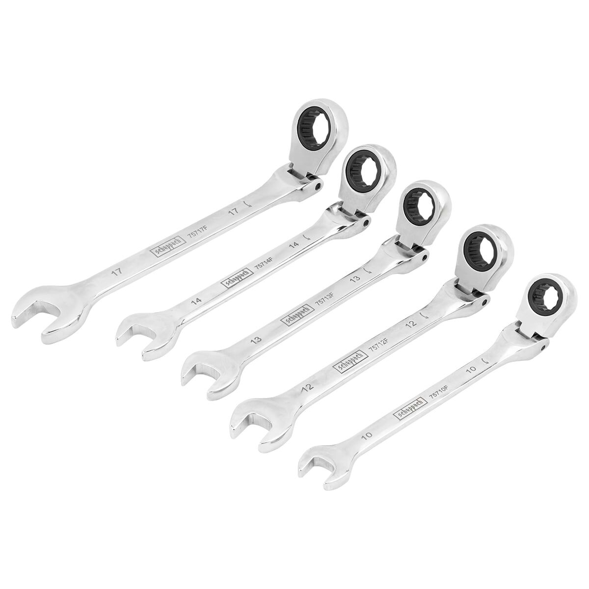 Набор ключей комбинированных Scheppach Sch-51052F(64813) трещоточные с шарниром, набор 5 предметов (10, 12-14, 17мм)