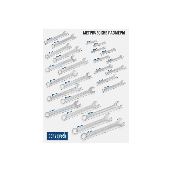 Набор ключей комбинированных Scheppach Sch-5261P(59129) 25пр. 6-28, 30, 32мм