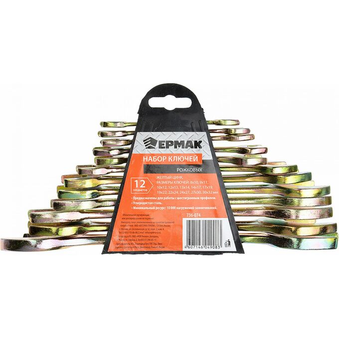 Набор ключей рожковых ЕРМАК 736-074 12 предм, 8x10-30x32мм, желтый цинк, пластик холдер