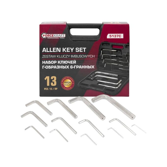 Набор ключей шестигранных Forcekraft FK-5137C(64481) Г-образные 13 предметов (2, 2.5, 3-8, 10, 12, 14, 17, 19 мм)