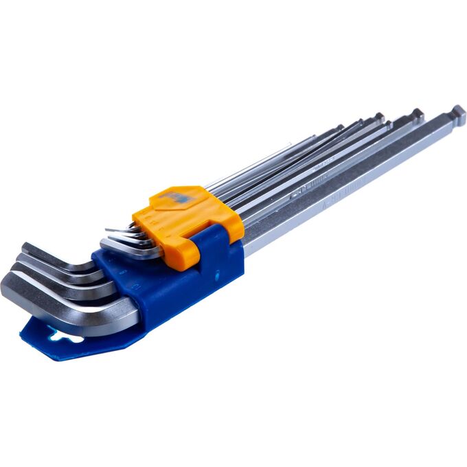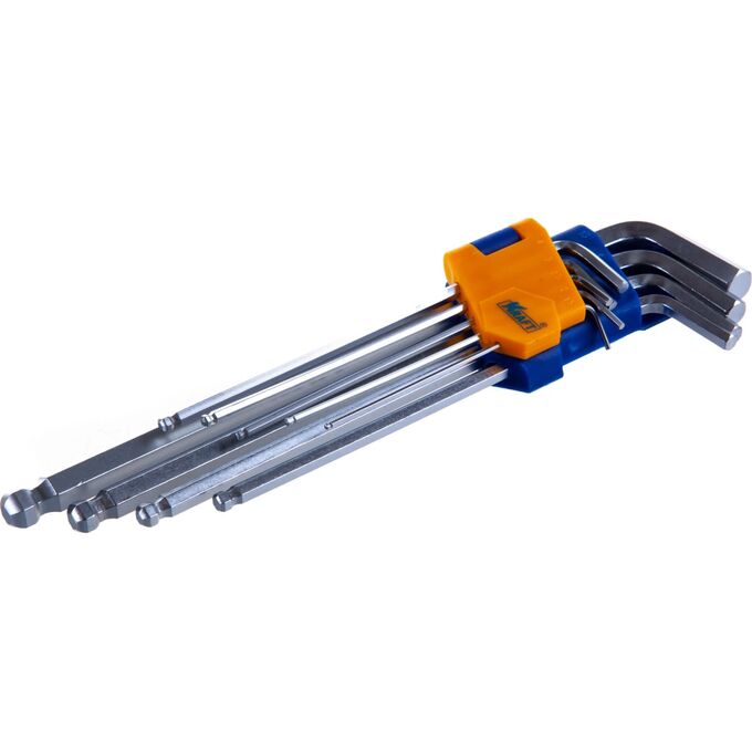 Набор торцевых шестигранных Г-образных ключей с шаром, длинных 9шт KRAFT KT 700562 представляет собой удобный инструмент, который можно использовать при работе с крепежом с внутренним шестигранником.