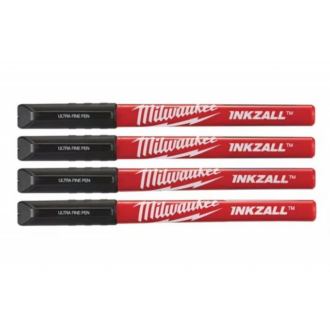 Ручка (черная, 4шт) Milwaukee INKZALL Fine Tip 48223164 с тонким наконечником используется для маркировки проводов и оставления заметок на чертежах. Высокое качество изделия обеспечивает четкую продолжительную линию на большинстве материалов.