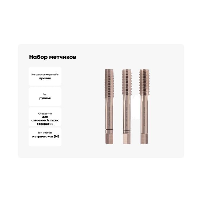 Набор метчиков H-Tools 230120HT из 3-х шт. М12 шаг 1.75мм DIN352 HSS-G