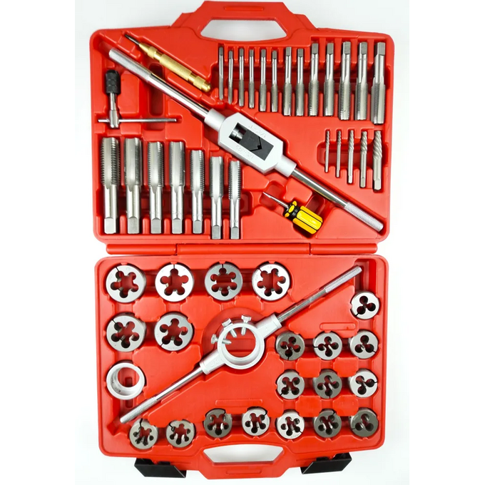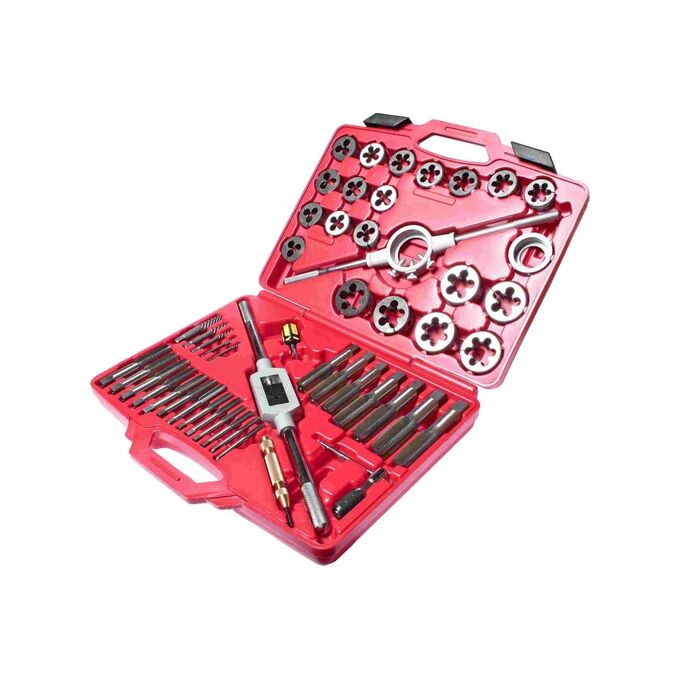 Набор метчиков и плашек, 51 предмет JTC-5214 - это профессиональный комплект инструмента, использующийся для быстрого и качественного нарезания резьбы различных типоразмеров на внешних и внутренних металлических поверхностях. Для удобства транспортировки поставляется в прочном кейсе, оснащенном специальными защелками для исключения случайного открывания и выпадения деталей. Все приборы и элементы выполнены из высокопрочной легированной стали. Весь набор обладает небольшими размерами - 380х315х85 мм, и малым весом - 6.230 кг.