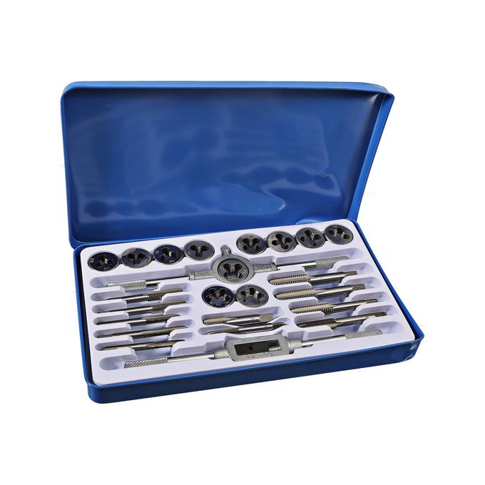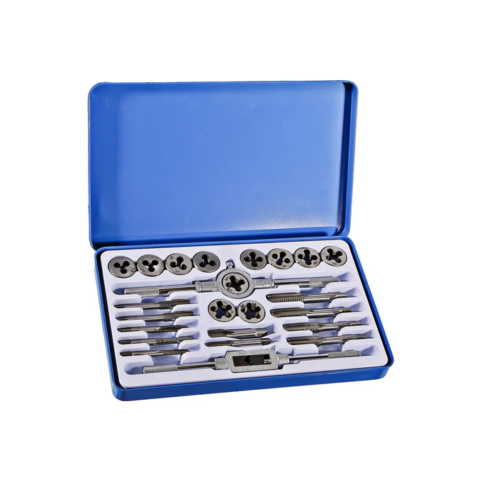 Набор метчиков и плашек для нарезания резьбы Sturm 1065-03-S24 пригодится для выполнения сантехнических работ, использования в мастерской или в гараже. Служит для ремонта старых и нарезания новых внутренних и наружных резьб. Инструменты выполнены из прочной стали, стойкой к большим нагрузкам, обеспечивающей точность работы. Набор из 24 предметов расположен в пластиковом кейсе, удобном для хранения и бережной транспортировки.