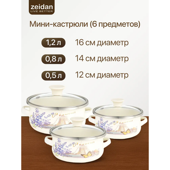 Набор мини-кастрюль Zeidan Z-80640 Lavenders