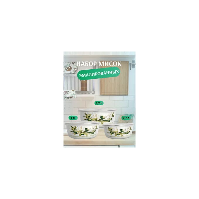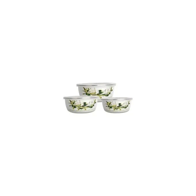 Набор мисок ZEIDAN , 6 предметов, (3 МИСКИ С КРЫШКАМИ: 1) 0,7 л. высота 6 см. диаметр 14 см), 2) 1,0 л. высота 6,5 см. диаметр 16 см), 2) 1,7 л. высота 8 см. диаметр 18 см) с внутренним эмалированным покрытием), эмалированная сталь, внешнее покрытие - эмаль с рисунком.