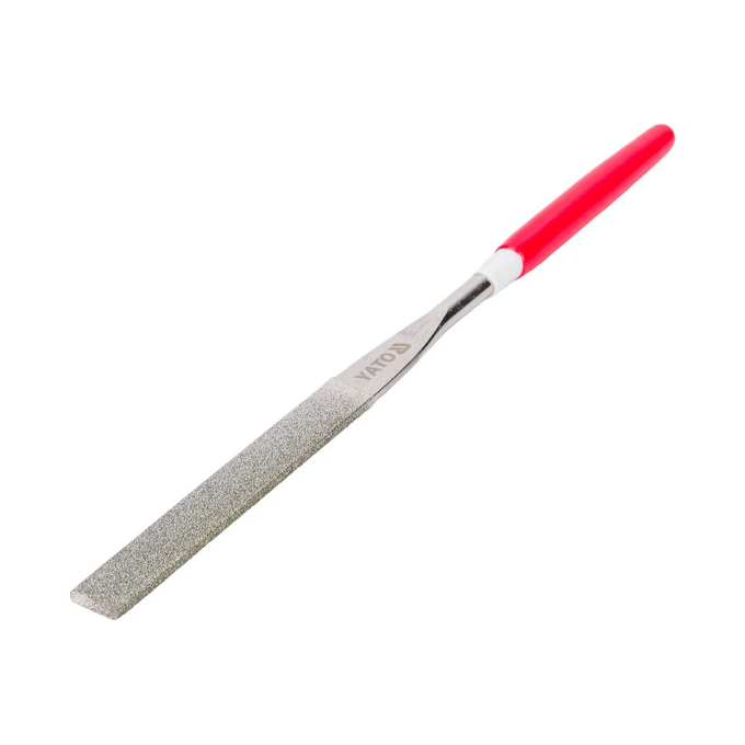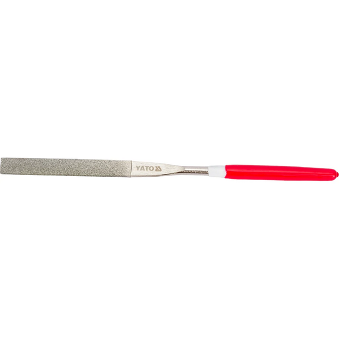 Алмазные надфили в наборе YATO 5x180x70мм, 3пр YT-6155 предназначены для выполнения мелких слесарных работ с заготовками из особо твердых материалов, таких как: металлы, керамическая плитка, стекло и пр. Инструменты очень удобны в применении, так как оснащены пластиковыми ручками. Надфили изготовлены из высокоуглеродистой стали и имеют напыление из алмазной крошки. В набор вошли 3 надфиля следующих типов: плоский, круглый, овальный.