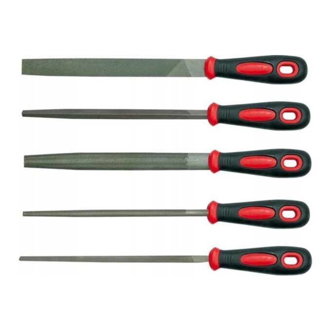 Напильники в наборе VOREL 5шт. 200мм 25166 изготовлены из высокоуглеродистой инструментальной стали и имеют насечку №2. Двухкомпонентная рукоятка обеспечивает комфортный захват при работе.