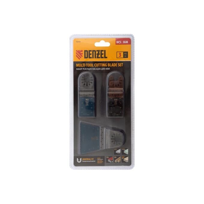 Набор Denzel 782403 состоит из 3 насадок по дереву, металлу и пластику, которые устанавливаются на МФИ. Благодаря ему можно осуществить широкий спектр работ: разрезать трубы, профильные листы, выполнить рез материалов, осуществить выборку пазов и др.