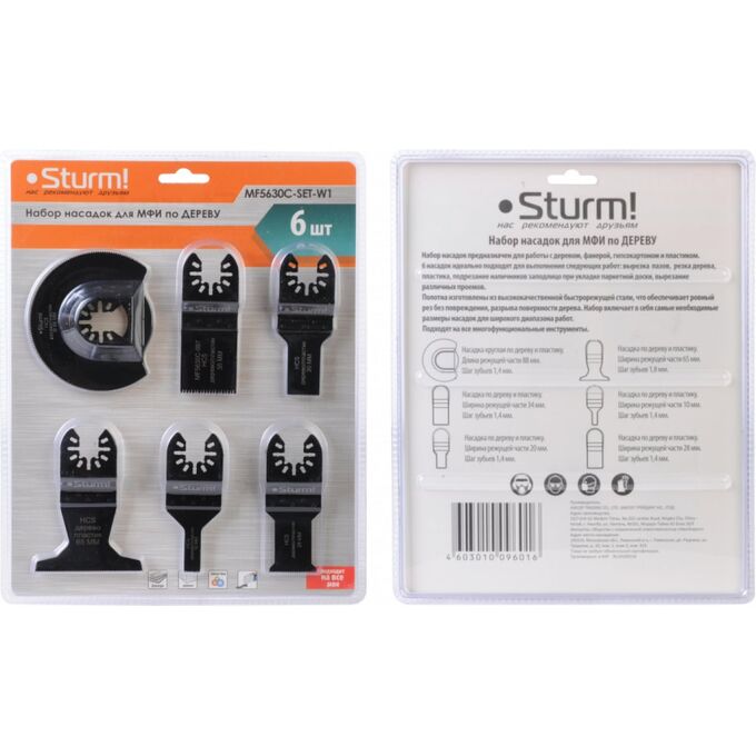 Набор насадок Sturm MF5630C-SET-W1 предназначен для МФИ. Предназначен для работы по дереву, фанере, гипсокартону, пластику. Служит для вырезки пазов, резки дерева, пластика, пластиковых труб и профилей, подрезания наличников заподлицо при укладке паркетной доски.
