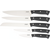 Состав набора: нож поварской 20 см, нож разделочный 20 см, нож для хлеба 20 см, нож универсальный 12,7 см и нож для чистки овощей 9 см, деревянный блок. Клинок – нерж. сталь X30Cr13. Рукоятка - ABS пластик со стальными креплениями. Материал блока: каучуковое дерево и акация. Не подходит для ПММ