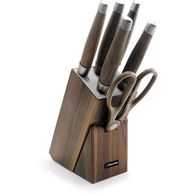 Набор ножей кухонных Rondell Glaymore RD-984 компл. 7предм. подставка/ножницы коричневый подар.коробка
