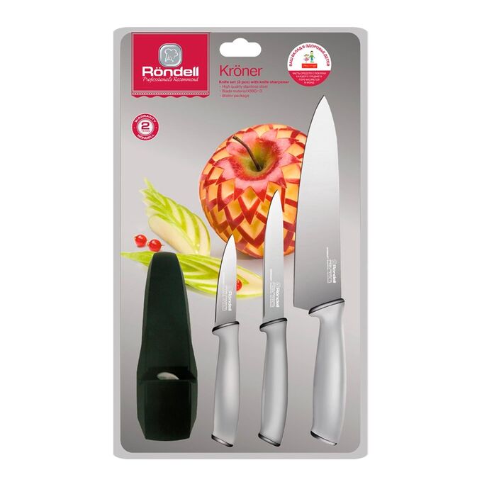 Набор ножей кухонных Rondell Kroner RD-459 компл. 4предм. с ножеточкой серый/черный