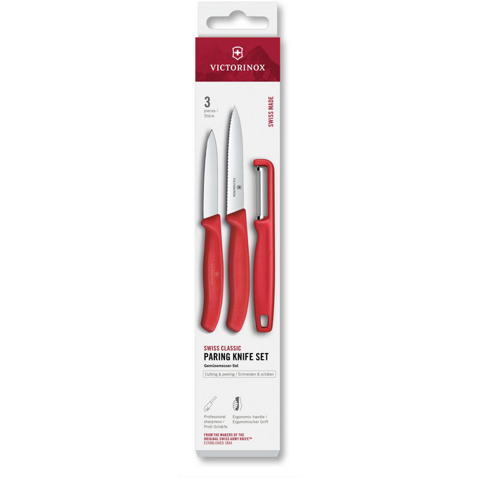 Набор ножей кухонных Victorinox Swiss Classic 6.7111.33C1 для овощей компл. 3предм. овощеч. красный европодвес