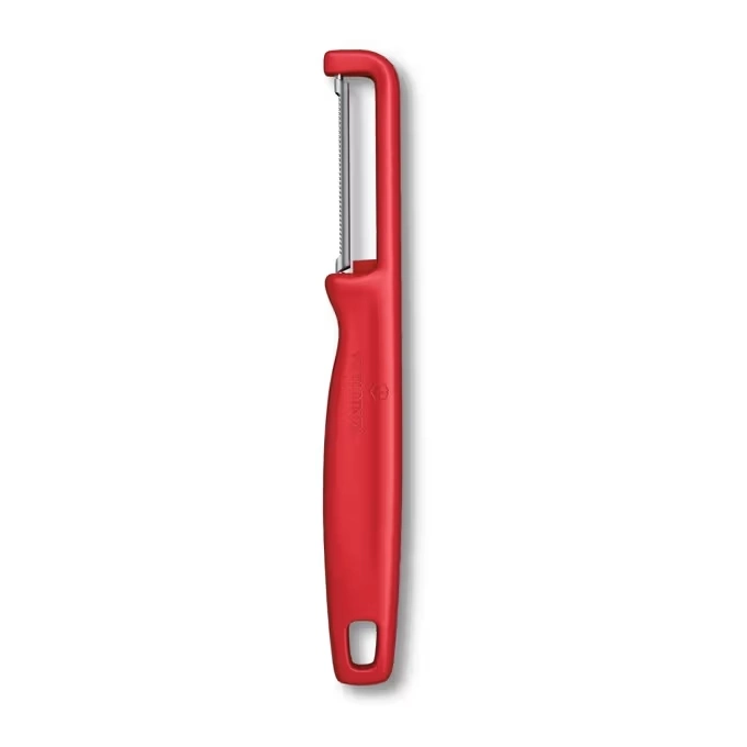 Состав комплекта В комплекте 2 красных ножа с прямой и серрейт заточкой, длиной лезвия 8 и 10 см, красная овощечистка Iota c двойным лезвием и серрейт заточкой