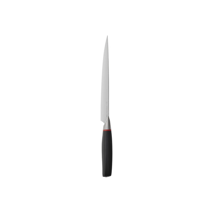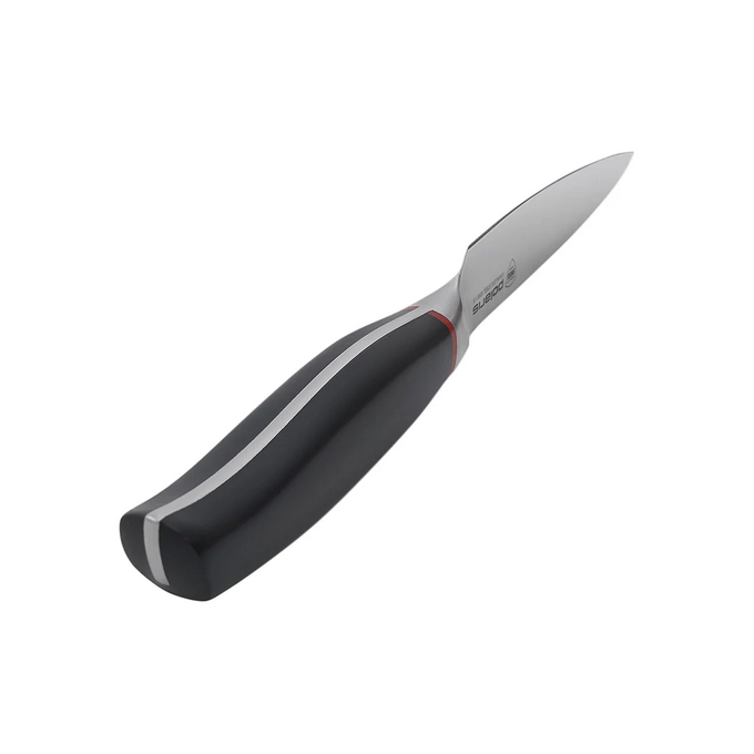 Изделия обладают высокой сопротивляемостью к деформации. Эргономичная форма рукоятки обеспечивает удобный захват инструмента и безопасность при работе, а жесткое трехклепочное крепление обеспечивает долговечность. Цельнокованые ножи отвечают самым высоким санитарным требованиям.