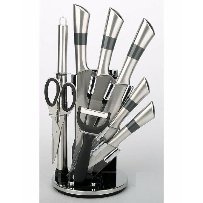 Набор кухонных ножей из нержавеющей стали 18/10 на подставке.