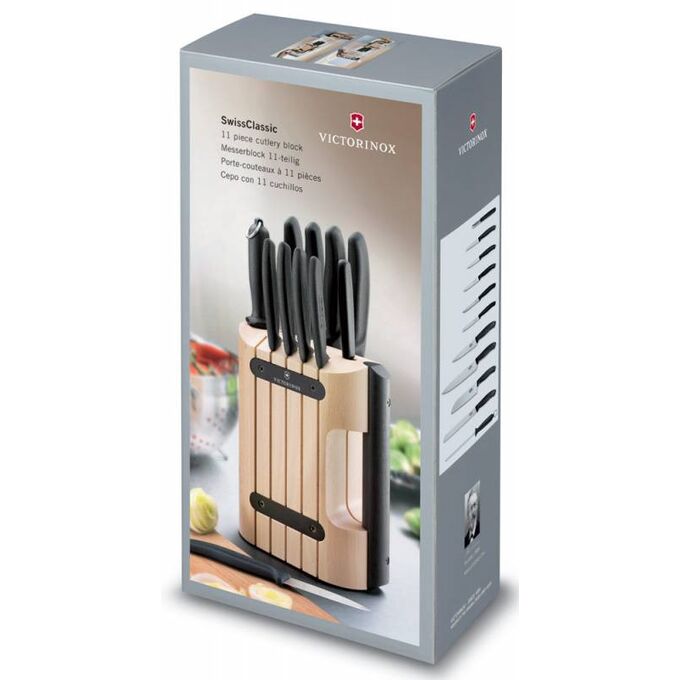Набор ножей кухон. Victorinox Swiss Classic (6.7153.11) компл.:11шт с подставкой черный подар.коробка
