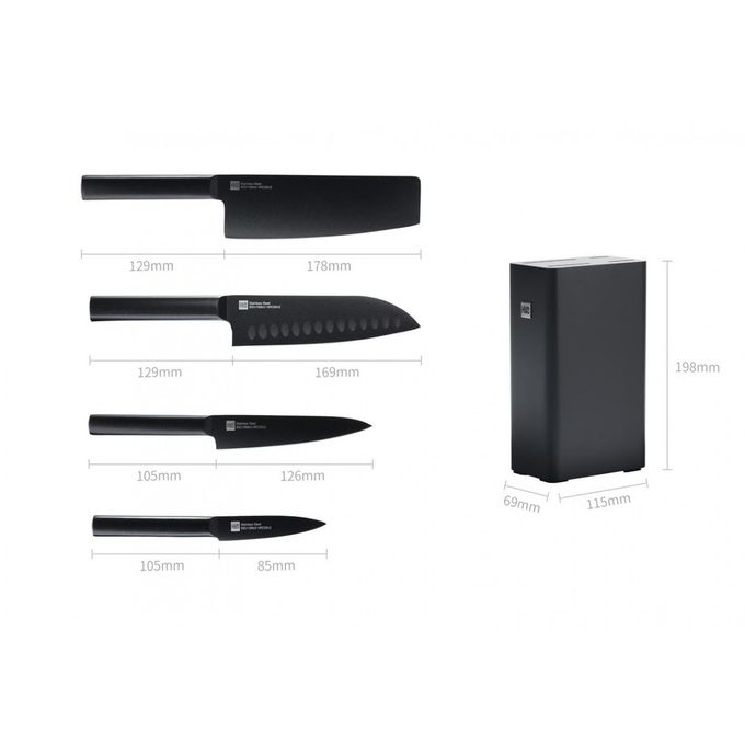 Набор ножей Xiaomi сталь X50 Cr Mo V 15 Huo Hou Heat Cool Black Non-stick Knife Set (4 ножа + подставка)