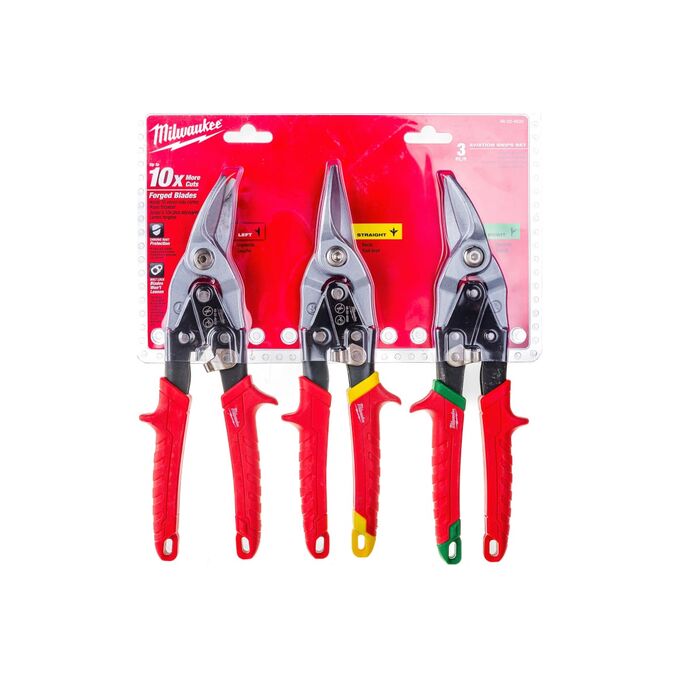 Ножницы по металлу, 3 шт. Milwaukee NEW 48224533 служат для резки листов металла. Эргономичные рукояти с ограничителями обеспечивают удобный захват без проскальзывания во время работы.