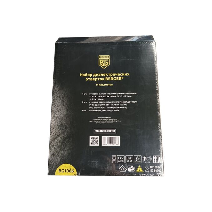 Набор диэлектрических отверток до 1000V, 11шт Berger BG BG1066 - комплект изолированных, токонепроводящих ручных инструментов, которые станут надежными помощниками для профессиональных электромонтажников.