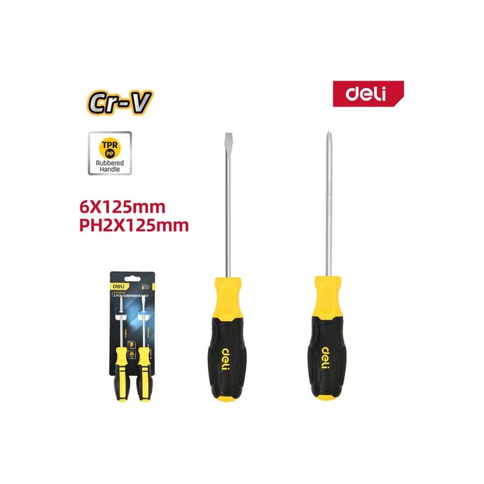 Набор отверток Deli DL630002N 2шт SL6x125 + PH2x125 сталь Cr-V, двухкомпонентная прорезиненная рукоять