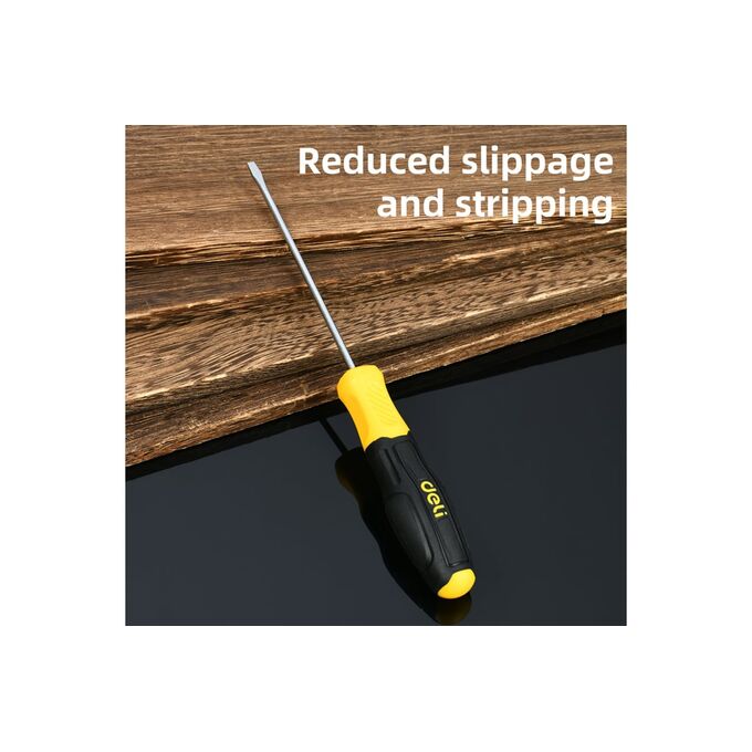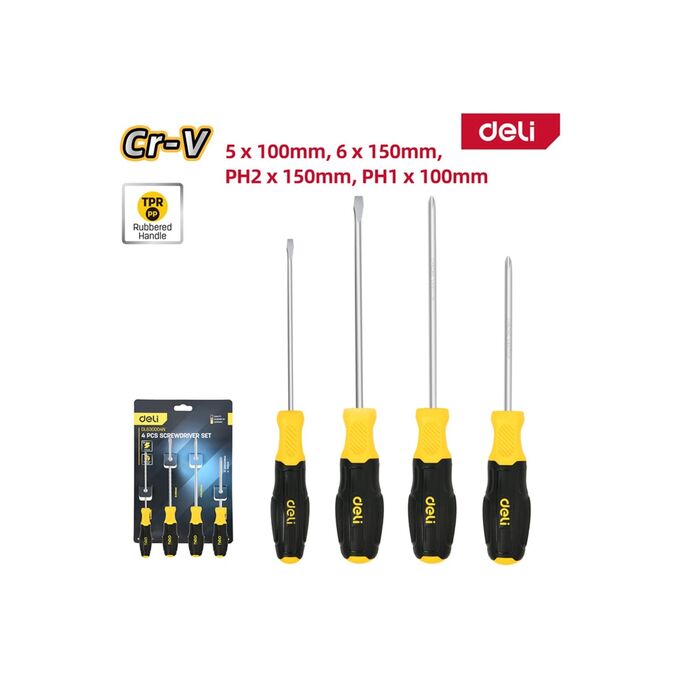 Набор отверток Deli DL630004N 4шт SL5x100 + SL6x150 + PH1x100 + PH2x150 сталь Cr-V, двухкомпонентная прорезиненная рукоять