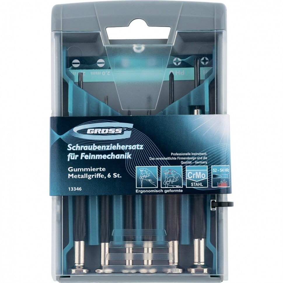 Набор отверток для точной механики Gross CrMo 13346 6 шт/метал.обрезин. рукоятки/бокс-трансформер